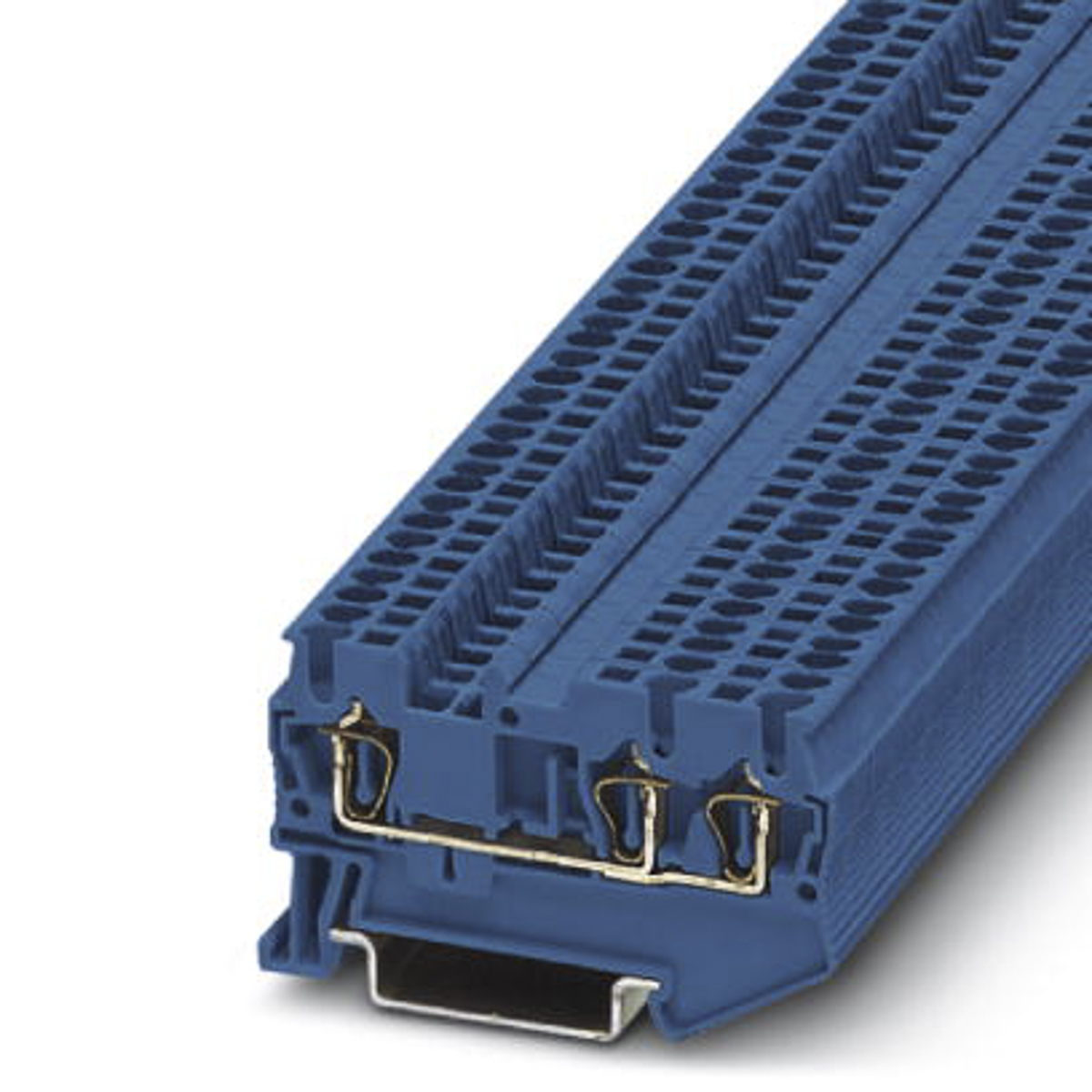 1. Blok zacisków przelotowych Phoenix Contact poziomy: Pojedynczy 28 → 16AWGZacisk sprężynowy ST 1.5-TWIN BU 17.5A 7.38