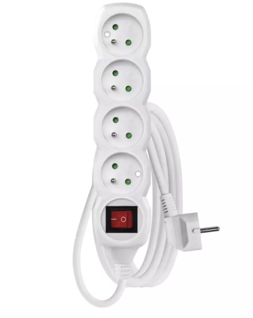 10. Przedłużacz 4 gniazda 3m biały Z ZABEZPIECZENIEM, WYŁĄCZNIK 27.15