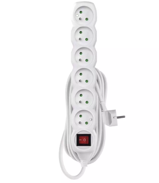 Przedłużacz 6 gniazd 5m biały Z ZABEZPIECZENIEM, WYŁĄCZNIK