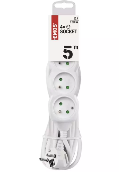 11. Przedłużacz 4 gniazda 5 metrów biały Z ZABEZPIECZENIEM 33.95