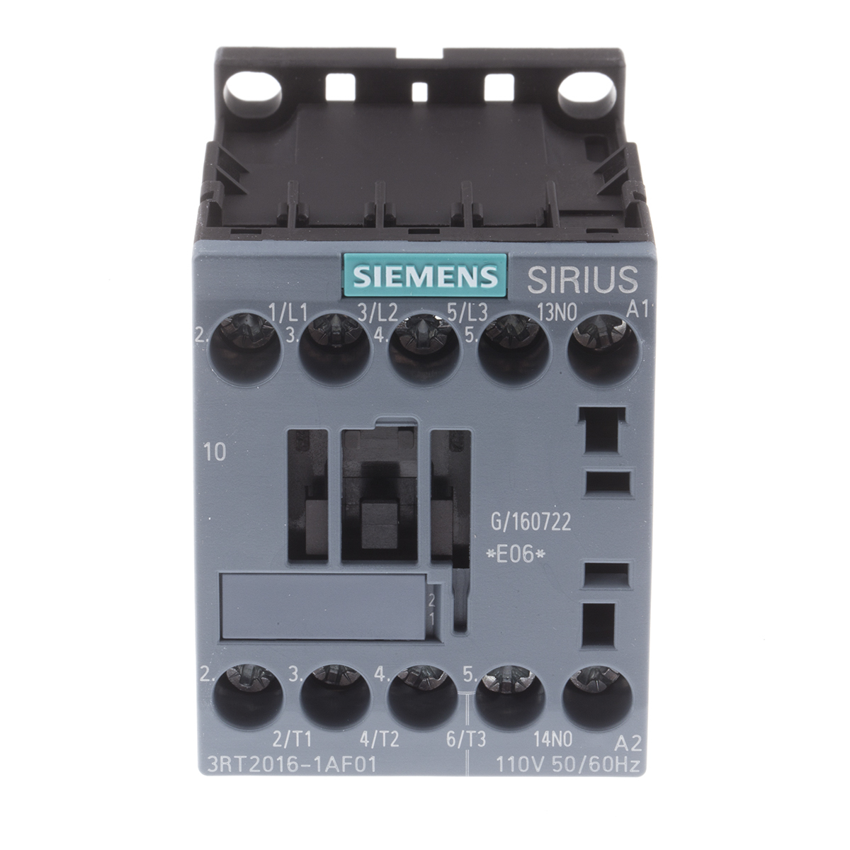 1. Stycznik 110 V ac Siemens styki: 3 4 kW 9 A 3NO Montaż na szynie DIN Śruba 3RT2016-1AF01 260.51