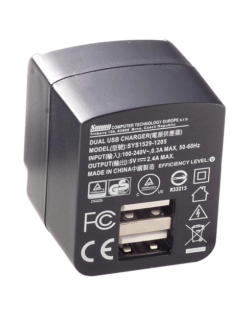 Zasilacz wtyczkowy SUNNY 5V 2,4A 12W 2xUSB | SYS1529-1205 + wtyczki