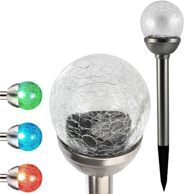 1. Lampa Ogrodowa LED Solarna Wbijana KULA SZKŁO Inox 8 cm GOLDLUX (Polux) 13.17