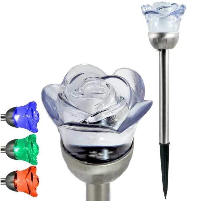 2. Lampa ogrodowa LED solarna RÓŻA wbijana 6500K zimna biała i RGB GOLDLUX (Polux) 13.80