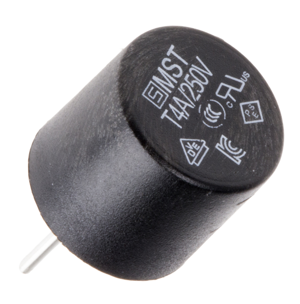 Bezpiecznik nieresetowalny 4A 250V ac Schurter T Termoplastyczne 40 A przy 125 V DC, 40 A przy 250 V AC rozstaw 5.08mm