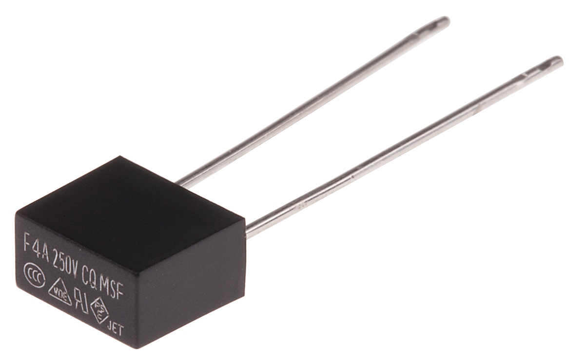 14. Bezpiecznik nieresetowalny 4A 250V RS PRO F Termoplastyczne 40 A przy 250 V AC rozstaw 5.08mm 0.85 x10