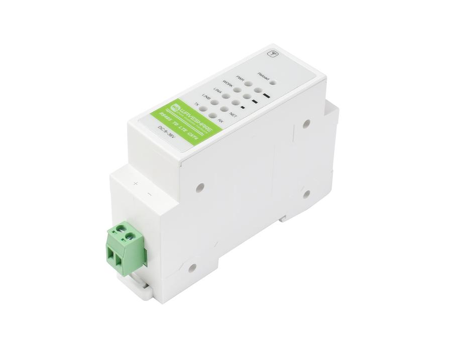 Waveshare Industrial 4G DTU, RS485 TO LTE CAT4, DIN Rail-Mount, for EMEA, Korea, Thailand, India, Southeast Asia