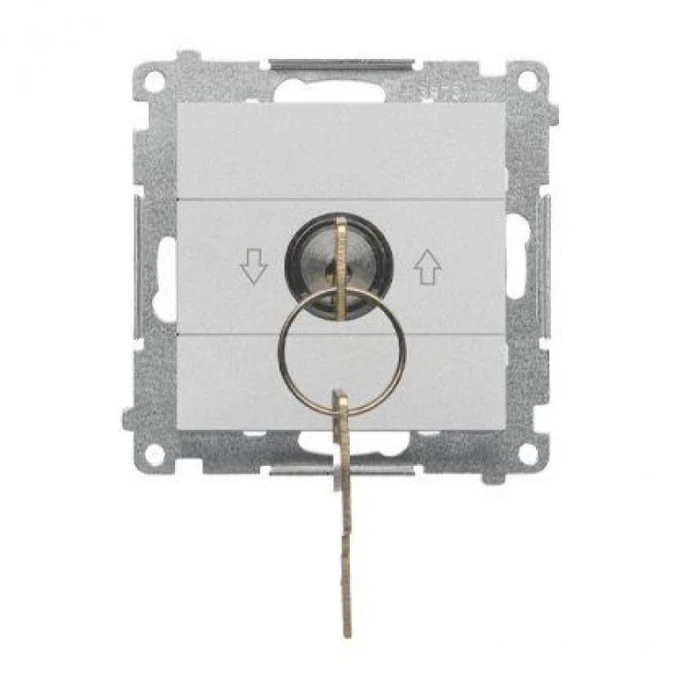 Simon 55 Łącznik na kluczyk roletowy chwilowy przycisk (moduł) 3 pozycyjny I-0-II” 2 styki N/O, 5 A Aluminium mat TPZK.01/143