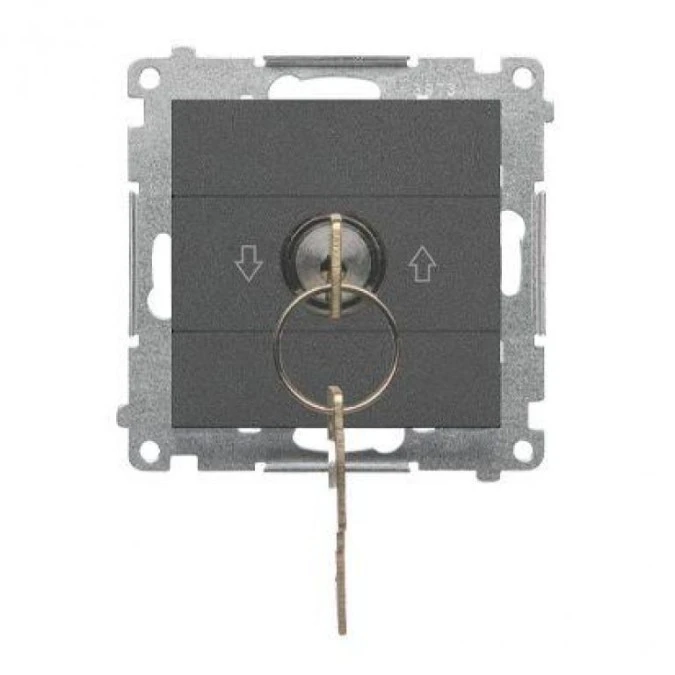 Simon 55 Łącznik na kluczyk roletowy chwilowy przycisk (moduł) 3 pozycyjny I-0-II” 2 styki N/O, 5 A Grafitowy mat TPZK.01/116