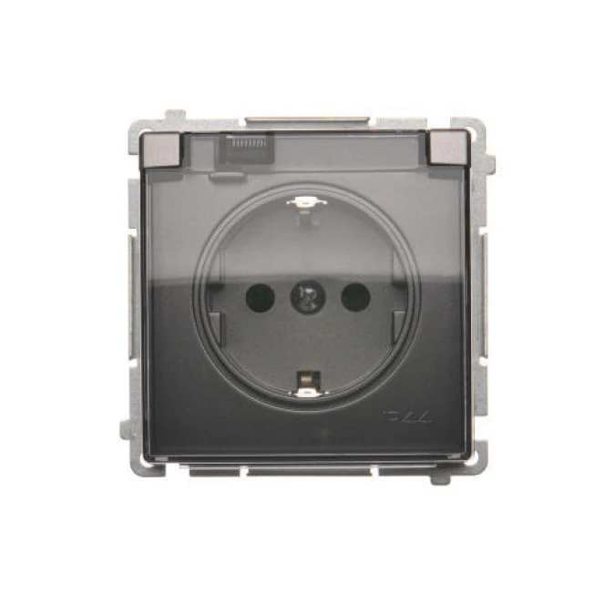 8. Simon Basic Gniazdo wtyczkowe Schuko do wersji IP44 z przesłonami (moduł) 16A, 250V~,zaciski śrubowe stal inox. Klapka transpare 24.80