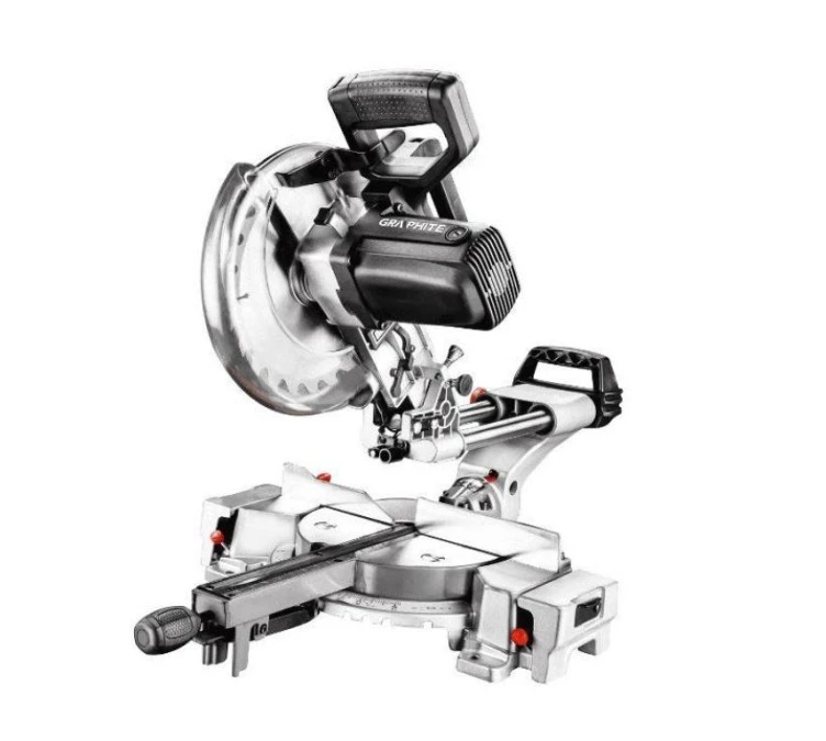 Piła, pilarka ukosowa sieciowa 230V 1800W z funkcją posuwu, tarcza 254x30mm w zestawie z akcesoriami GRAPHITE 59G812
