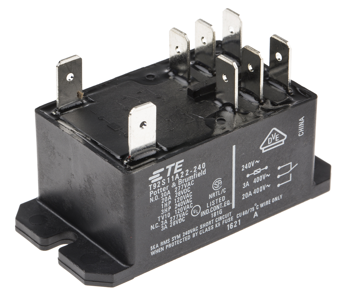 11. Przekaźnik mocy 110 → 120V ac DPDT TE Connectivity 40 A Montaż na panelu Szybkie łączenie 132.94
