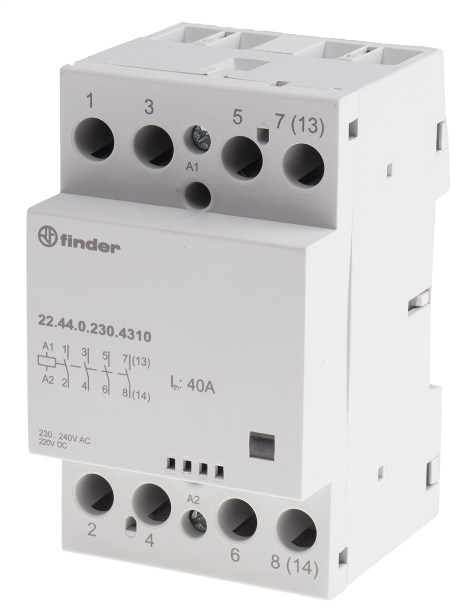Stycznik 230 V AC/DC Finder styki: 4 6 VA 40 A 4NO Szyna DIN Śruba 22.44.0.230.4310