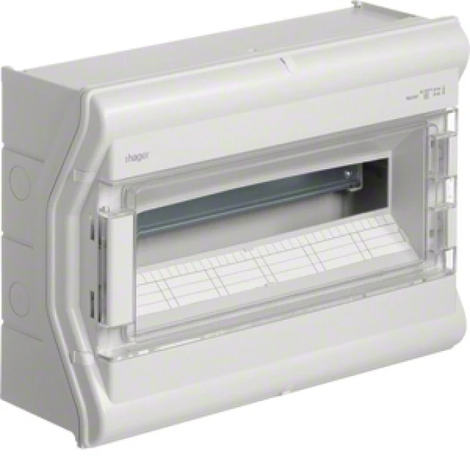 3. Rozdzielnica hermetyczna natynkowa 18 modułowa 1x18M drzwi transparentne IP65 vector II VE118L HAGER 249.69