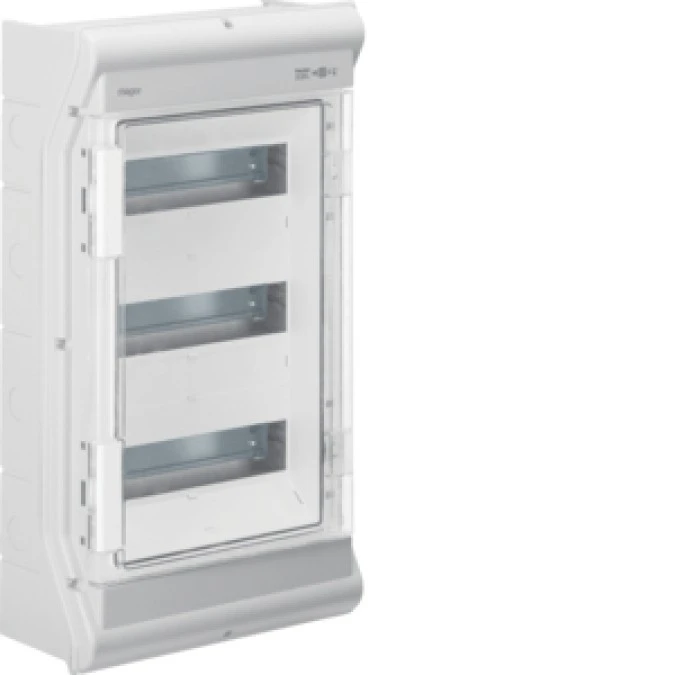 6. Rozdzielnica hermetyczna natynkowa 36 modułowa 3x12M drzwi transparentne UV z przetłoczeniami IP65 vector outdoor VE312PN HAGER 364.15