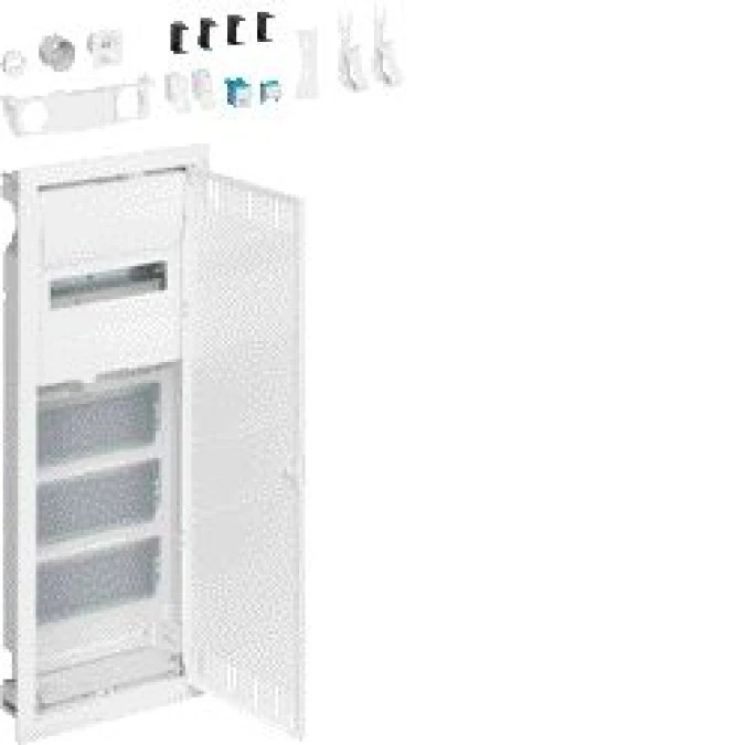 1. Rozdzielnica hybrydowa podtynkowa, 1 x12modułów, 3x płyta montażowa, 1x gniazdo 230V, HAGER Volta Hybrid VU601PLH 278.49