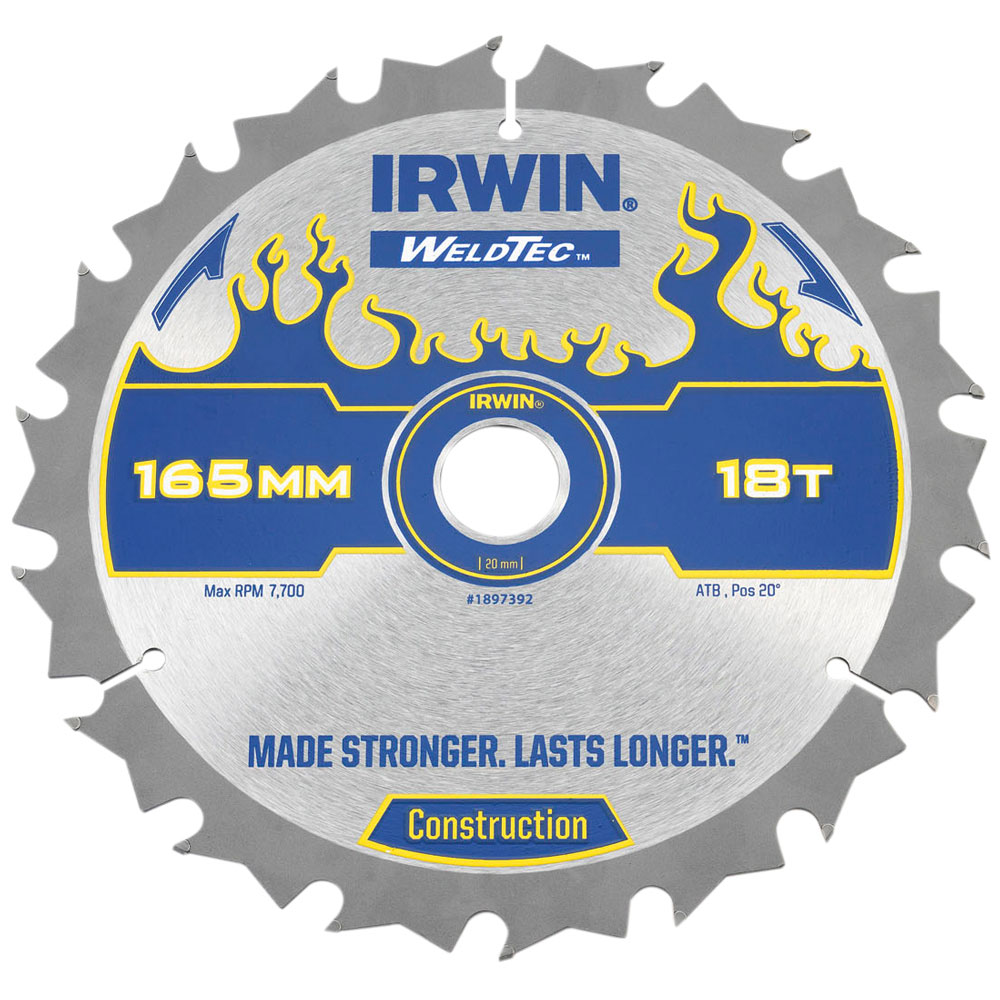 7. IRWIN® 1897392 Weldtec Cordless Circular Saw Blades 165 x 20mm x 18T ATB 211.02