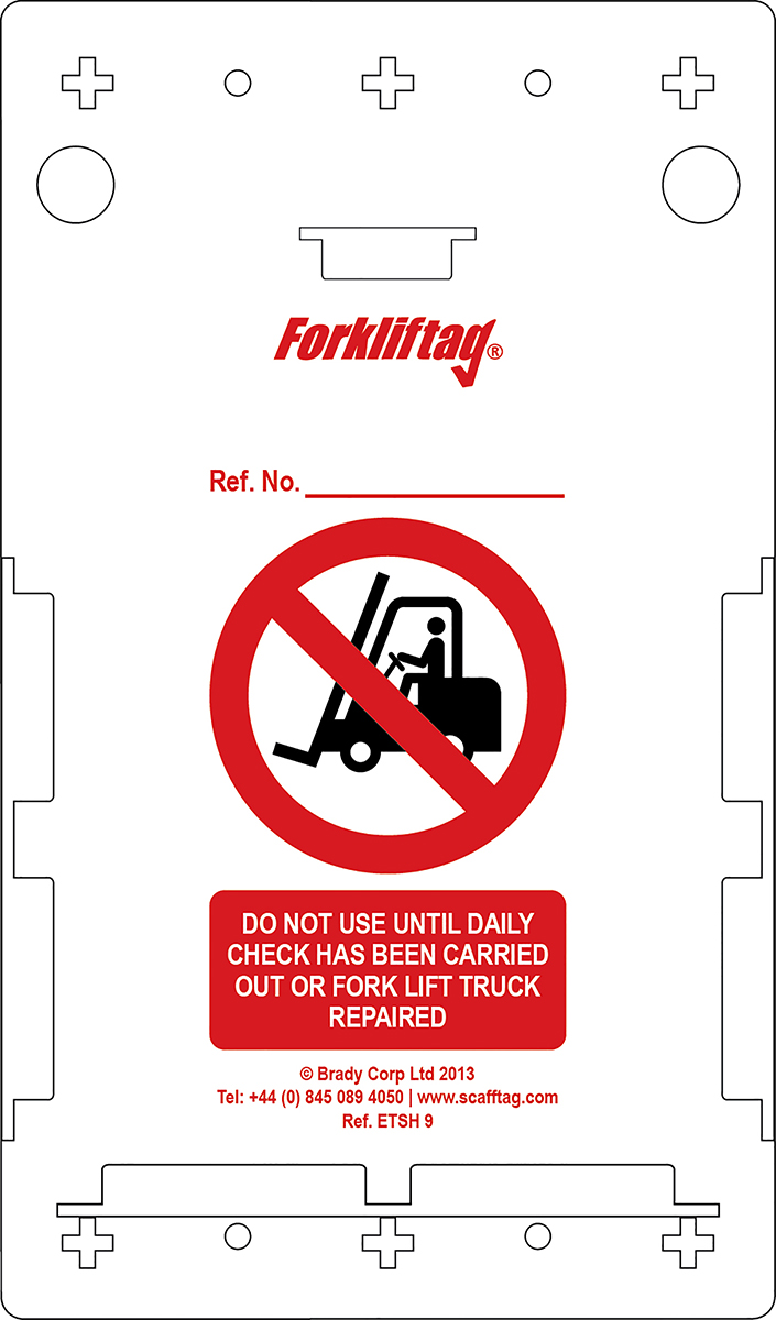 Zawieszka na wózek widłowy Czerwony na białym Angielski, Kit Contents 10 Uchwytów do wózków widłowych Brady