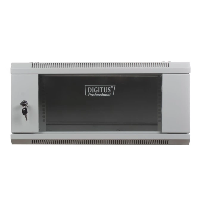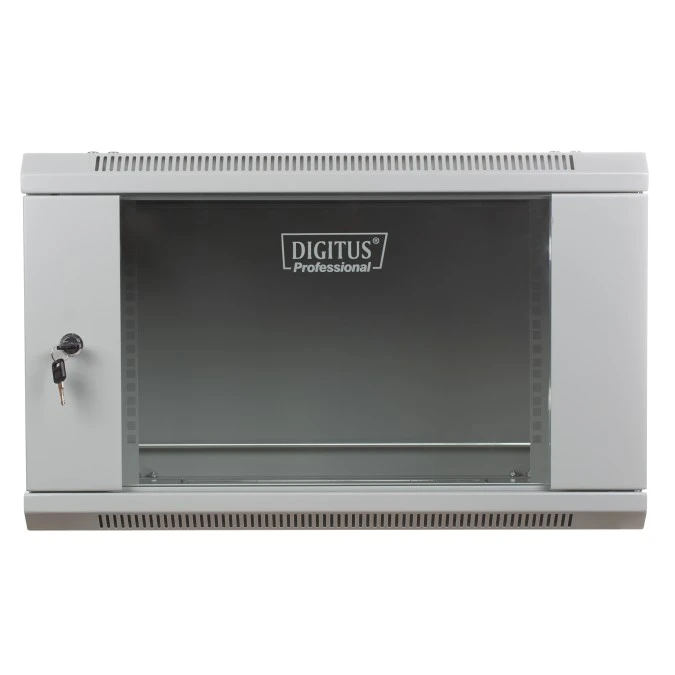 Szafa wisząca jednosekcyjna 19 cali 6U 368/600/450mm drzwi szklane szara (RAL 7035) niezmontowana DN-WU19 06U/450