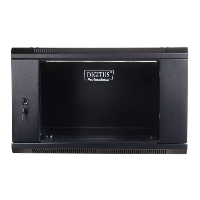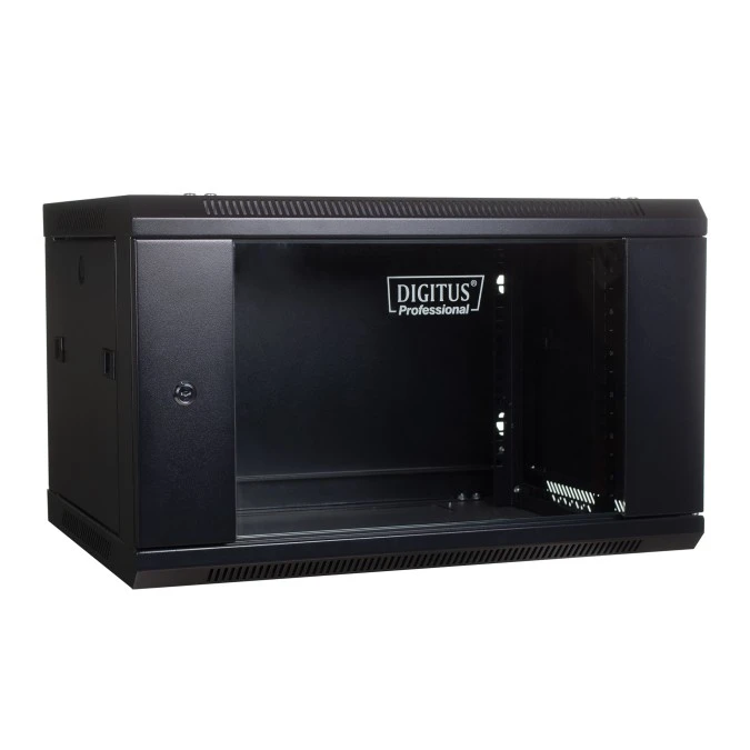 Szafa wisząca jednosekcyjna 19 cali 6U 368/600/450mm drzwi szklane czarna (RAL 9004) niezmontowana DN-WU19 06U/450/B