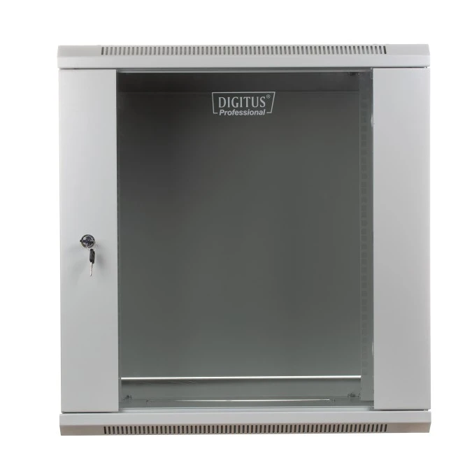 12. Szafa sieciowa wisząca 19 18U rack 600x600, drzwi szyba, szary, niedzielona, niezłożona, 60kg DN-WU19 18U/600 619.12