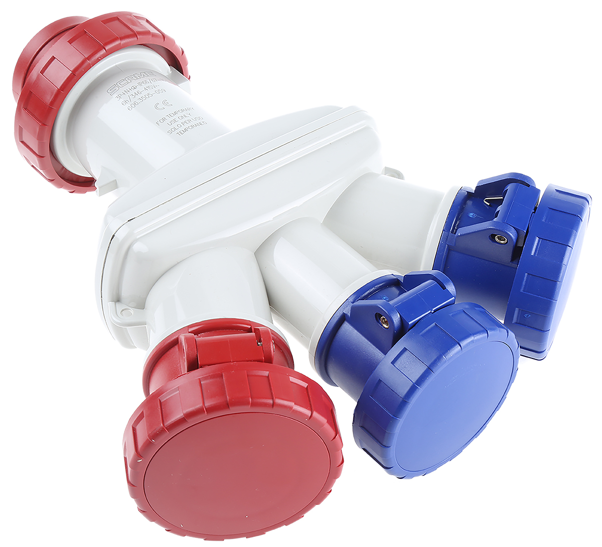 13. Adapter do przedłużacza sieciowego 16A Wtyczka, gniazdo 415 V 1 x 3P + N + E, 1 x 3P + E, 2 x 1P + E Scame Czerwony IP66 850.42