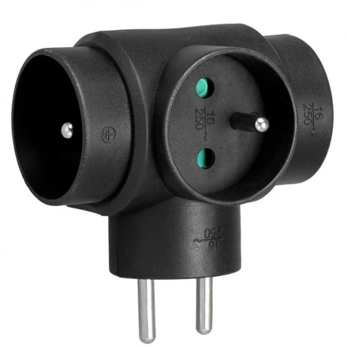 Rozgałęźnik sieciowy 3 gniazda z uziemieniem (T) czarny VA0276B VAYOX