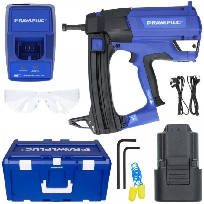 Osadzak gazowy akumulatorowy 7,2V do betonu i stali w zestawie z akumulatorem, ładowarką i walizką Rawlcase RAWLPLUG R-SC40II-XL
