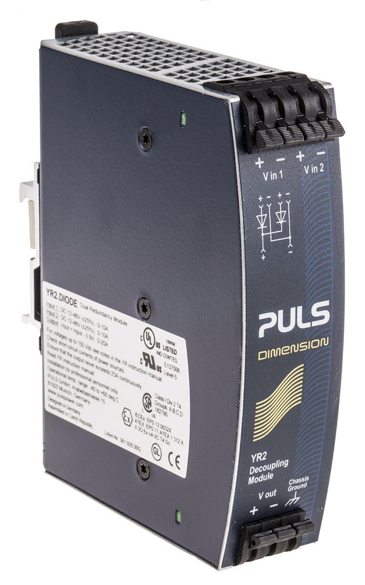 PULS YR2.DIODE Dimension DIN Rail Redundancy Module 2 x 10A Inputs 40A Output