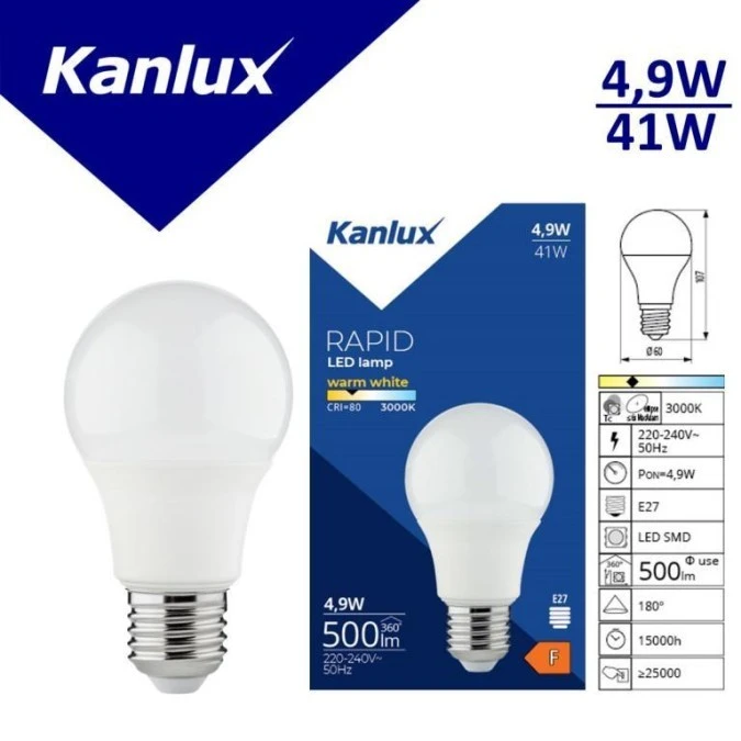 2. E27 A60 4.9W 840 180deg; SMD Kanlux 9441 Rapid v2 3.00
