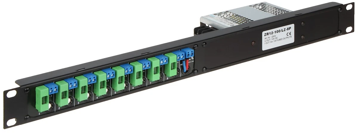 9. Wysokiej jakości 8-kanałowy profesjonalny zasilacz impulsowy z regulacją, 12V 8,5A 100W, Rack 19” 1U ZR12-100/LZ-8P 393.16