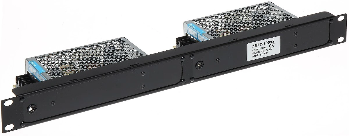 Wysokiej jakości profesjonalny podwójny zasilacz impulsowy z regulacją, 2x12V 2x8,5A 2x100W, Rack 19” 1U, ZR12-100X2