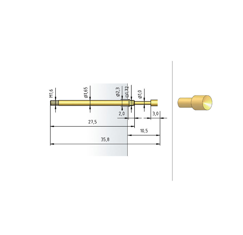 Igła testowa 1021/G-D-1.5N-AU-1.0, raster 2,54 (100 mil)