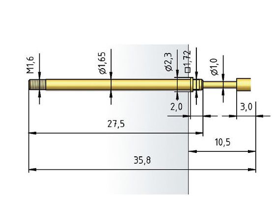 1. Igła testowa 1021/G-D-1.5N-AU-0.8, raster 2,54 (100 mil) 14.18