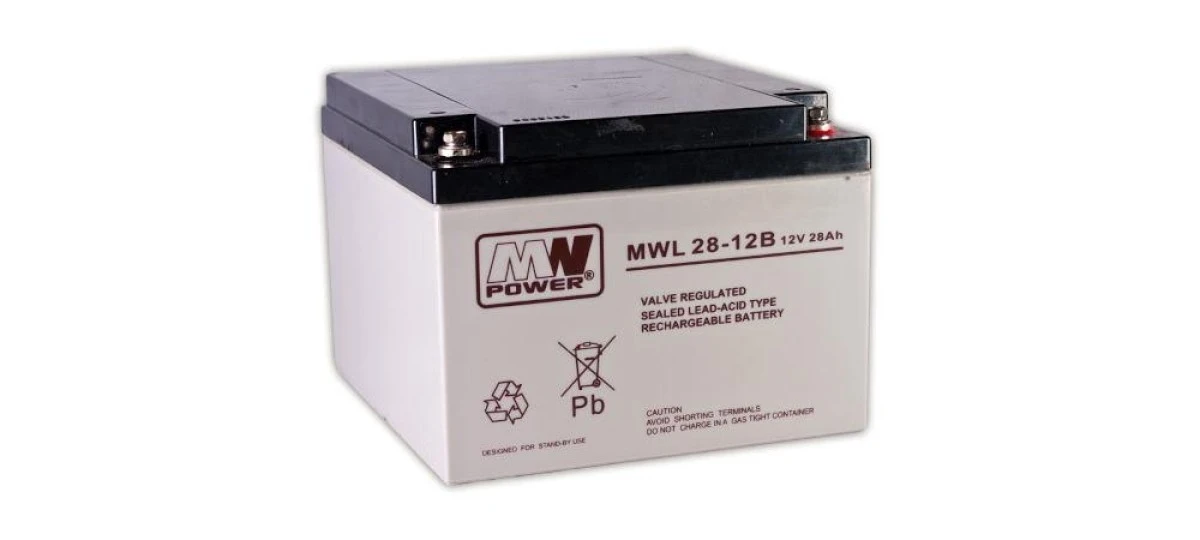 Akumulator; kwasowy bezobsługowy AGM; MWL 28-12; 12V; 28Ah; 166x125x175(182)mm; śruba M5; MW POWER; 9kg; 10÷12 lat
