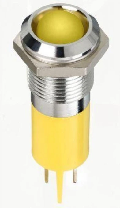 5. Lampka kontrolna do montażu panelowego 12V dc, Żółta 14mm LED Chrom Faston, oczko lutownicze RS PRO 65.04