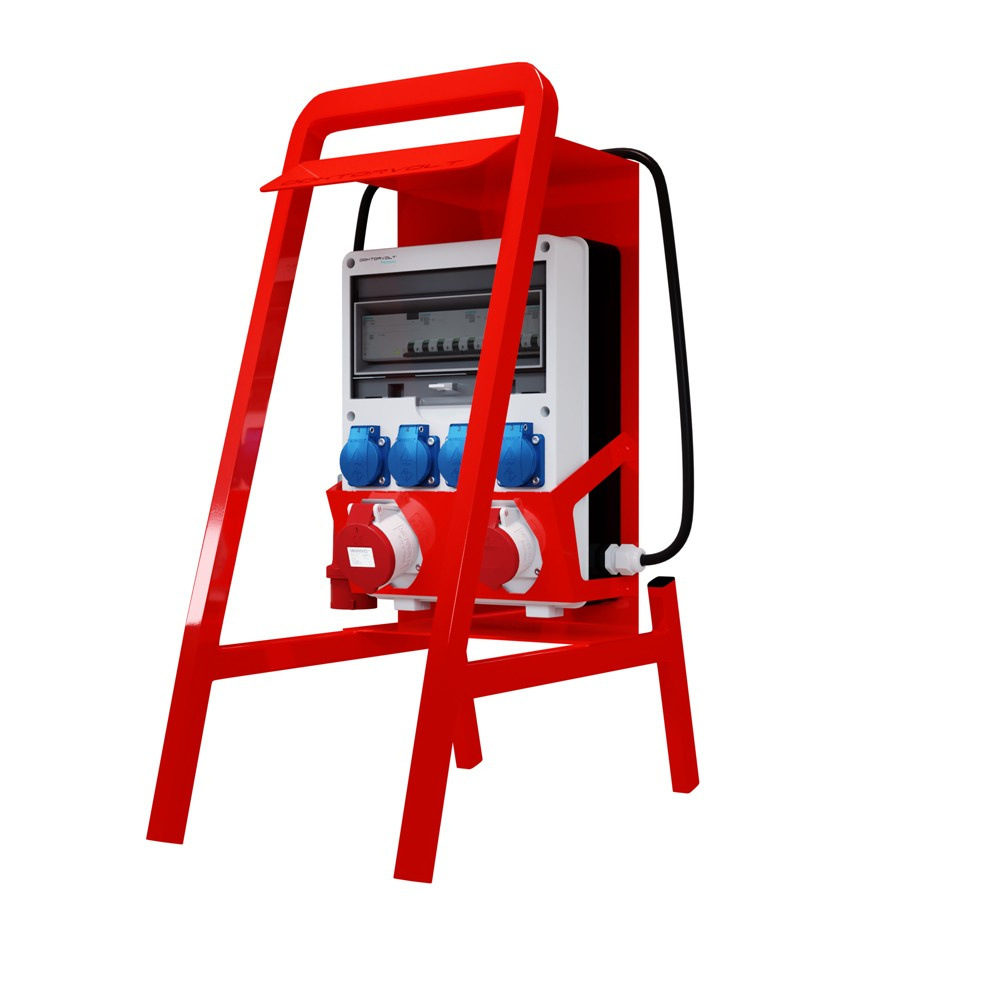 Rozdzielnica budowlana OS-S/FI SET 32A CEE MENNEKES z gniazdami 400V 230V na stojaku wyłącznik różnicowy rozdzielnia elektryczna
