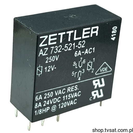 AZ732-521-52 Relay 12VDC 6A Coil 270 Ohm THT ZETTLER