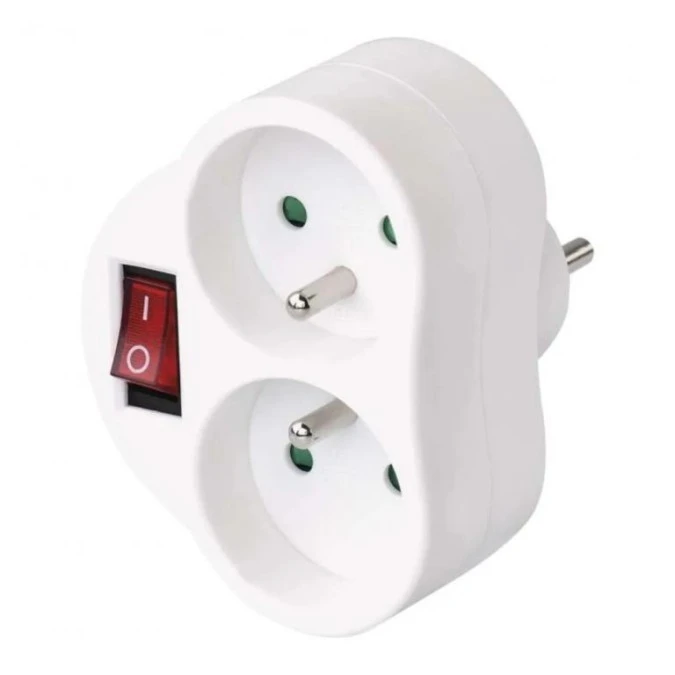 Rozgałęźnik 2-gniazdowy - 2x2P+Z z podświetleniem, z wyłącznikiem, z uziemieniem, biały / 12086