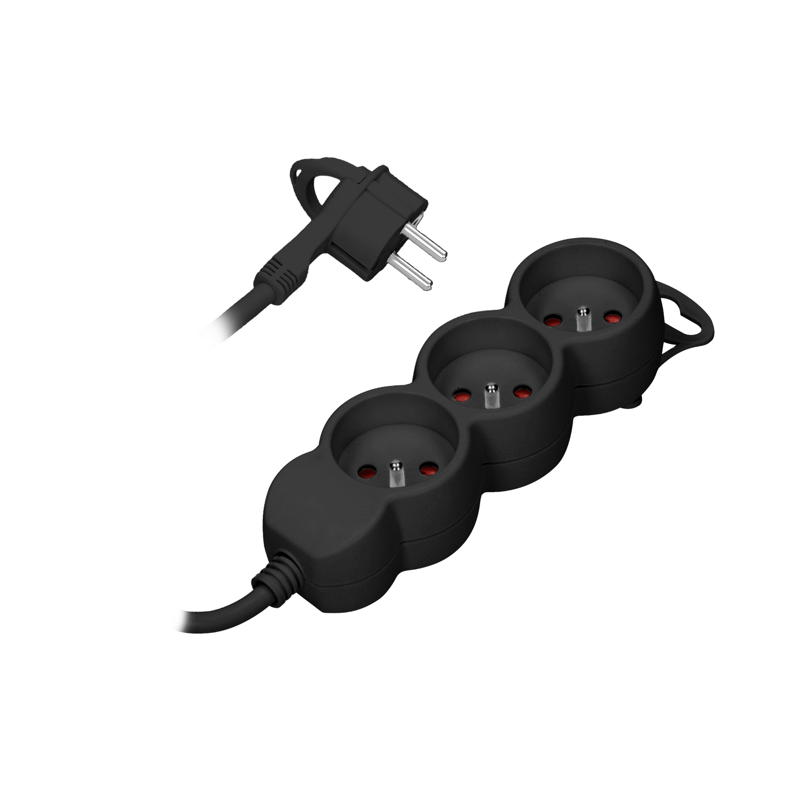 11. Przedłużacz 3-krotny 2P+Z. 1.5m H05VV-F 3x1.0mm2 . Imax 10A. płaska wtyczka. czarny OR-AE-13145/B/1,5M 18.59