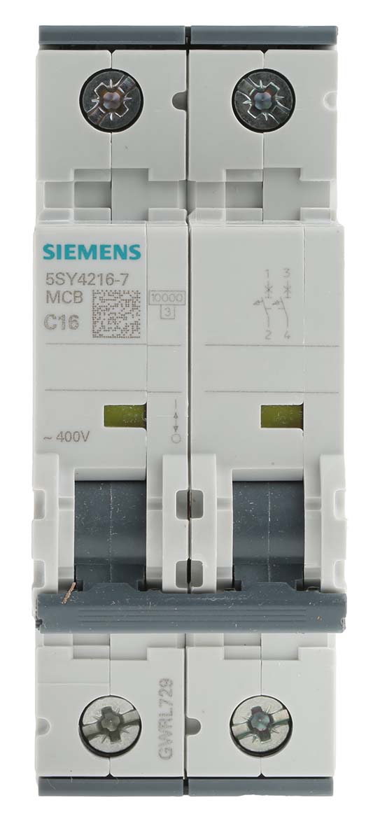 Wyłącznik nadprądowy MCB, Typ C, 2-biegunowy, 16A, 400V, 72V, na szynę DIN, Siemens, 5SY4