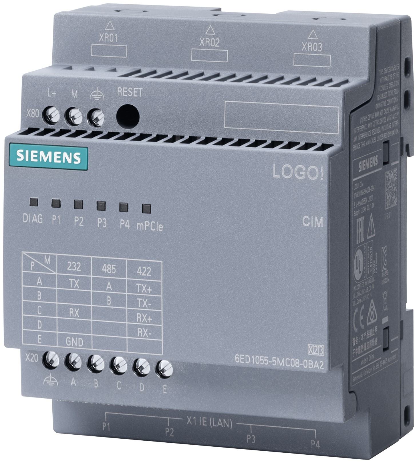Moduł komunikacyjny Logo! 8 Modbus RTU (RS232/485) 4-portowy przełącznik bez silnika 4G/LTE bez anteny GPS 6ED1055-5MC08-0BA1