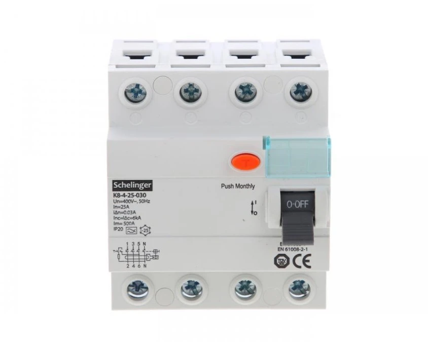 Wyłącznik różnicowoprądowy A 4P 25A 30mA Schelinger A03-K8-4-25-030