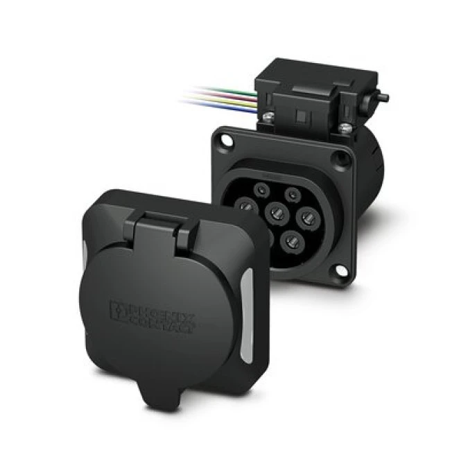 Gniado do stacji ładowania EV, klapka ochronna, 12V, 4 -bieg. rygiel, czujnik temp., wskaźnik LED EV-T2M3SO12-4P-P-SET