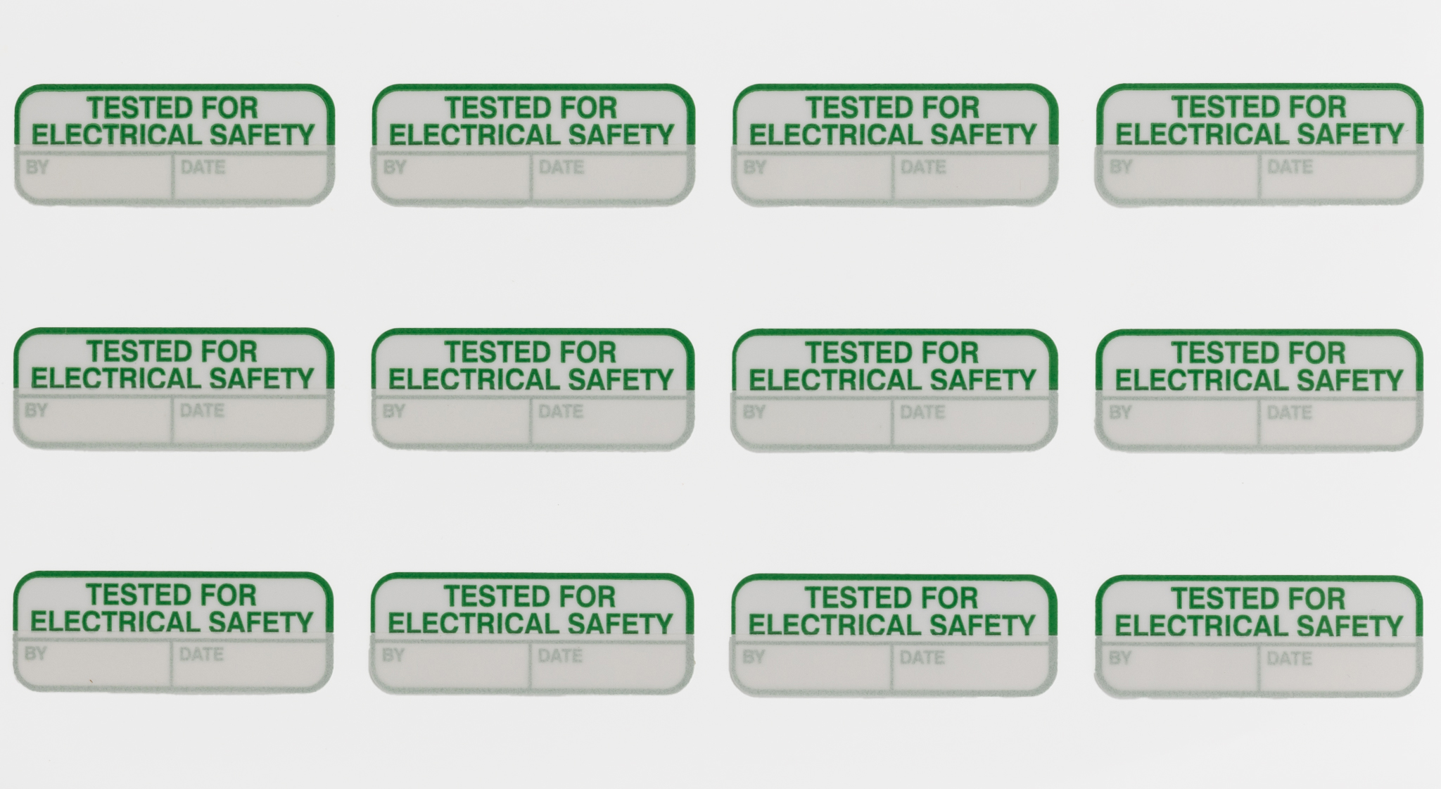 2. Etykieta zielona z nadrukiem tekst Tested For Electrical Safety 120 szt. RS PRO Klej 68.23