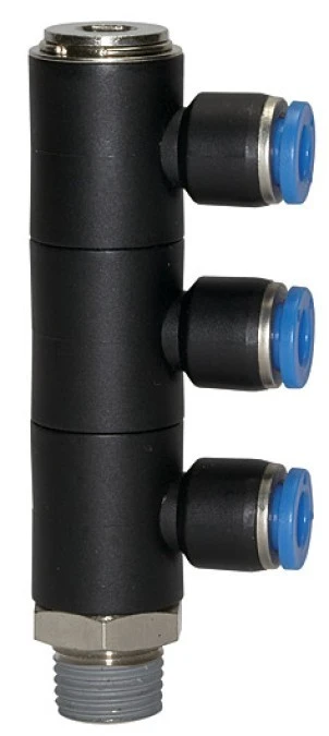 11. Rozdzielacz wtykowy typu Banjo jednostronny R 1/8 GZ do węża fi 4 mm, tworzywo sztuczne 45.92