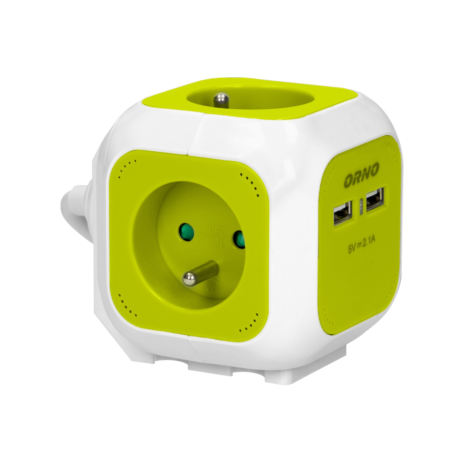 Przedłużacz Kostka 4-krotny z ładowarką 2xUSB 1 4m limonkowy OR-AE-13144/L