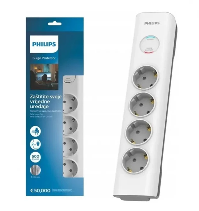Listwa przepięciowa bez bolca pod biurko 4 gniazda schuko Philips SPN7040WA/58