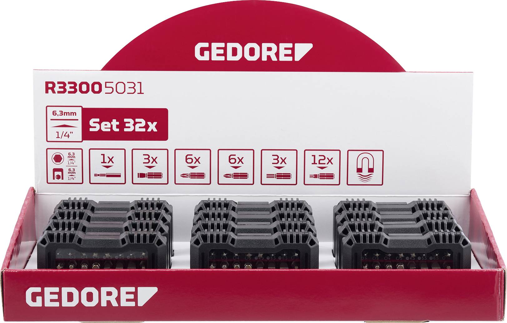 Pudełko na bity Gedore Display 12xBit-Box 1/4 "SL+PH+PZ+TX 32tlg R33009032 12 szt. 1/4" (6.3 mm)