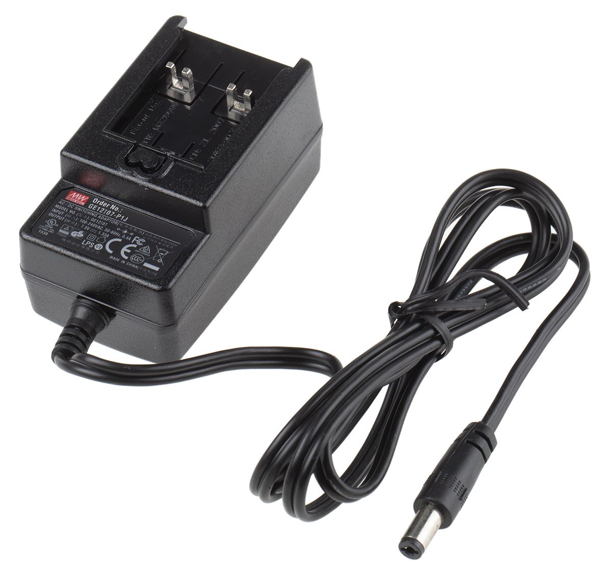 7. Adapter AC/DC Uwy 7.5V dc Iwy 1.33A Złącze 2,1 x 5,5 x 11 mm, biegun dodatni w środku 10W, typ wtyczki: Wtyk 95.61